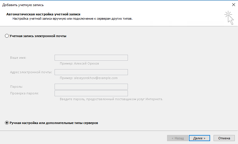 | Пароль | Пароль, который вы используете для входа в почтовый ящик |