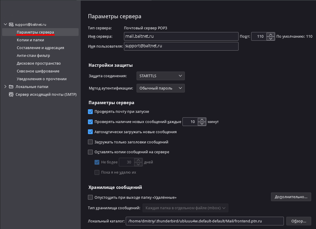 | Сервер входящей почты (POP3 сервер)